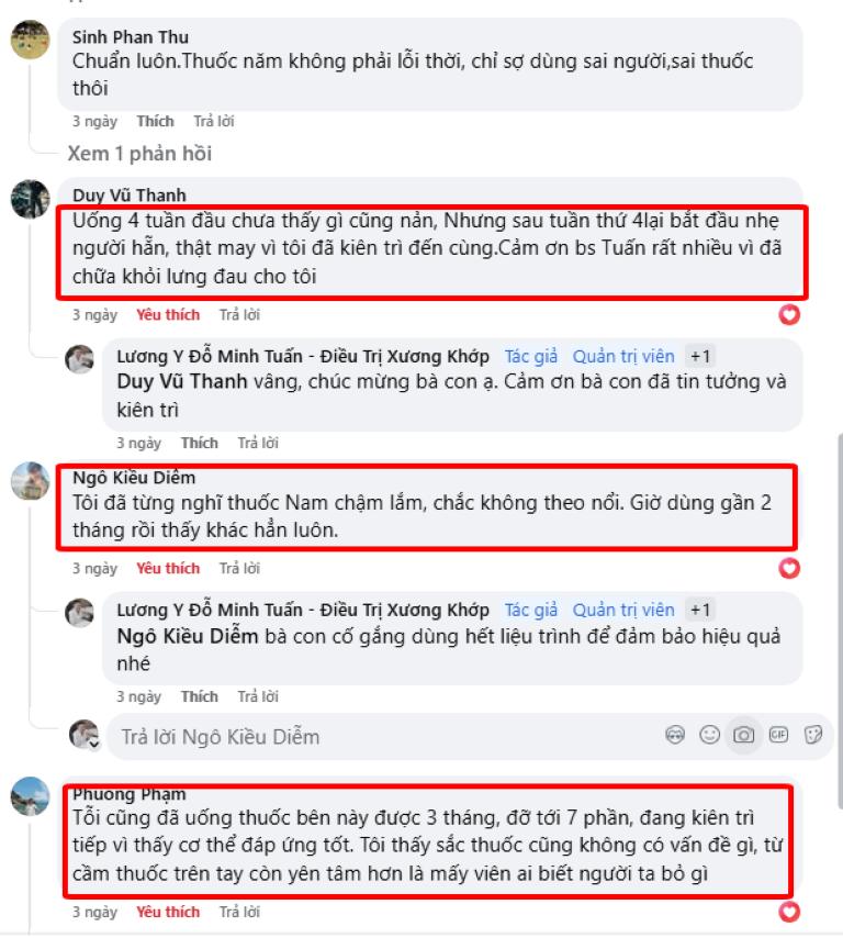 Ngoài thành phần sạch, lành tính bà con yên tâm bởi những ưu điểm nổi bật của bài thuốc Xương khớp Đỗ Minh Đường Thứ nhất, bài thuốc lâu đời Xương khớp Đỗ Minh Đường không phải bài thuốc mới xuất hiện mà là phương thuốc gia truyền hơn 100 năm của dòng họ Đỗ Minh. Bài thuốc được kế thừa, gìn giữ và phát triển liên tục qua nhiều thế hệ, đến nay được lương y Đỗ Minh Tuấn – truyền nhân đời thứ 5 tối ưu để phù hợp với cơ địa, lối sống hiện đại. Thứ 2, được VTV2, VTC6 giới thiệu Không chỉ được bệnh nhân truyền tai nhau, bài thuốc còn được giới thiệu trên các chương trình sức khỏe uy tín như “Khỏe thật đơn giản” – VTV2, “Chuyên gia cho mọi nhà” – VTC6. Đây là minh chứng rõ ràng cho tính an toàn, hiệu quả, cũng như sự ghi nhận của truyền thông chính thống. Thứ ba, khẳng định chất lượng, hiệu quả từ người sử dụng Rất nhiều bà con bị bệnh thoái hóa, thoát vị, viêm khớp… đã sử dụng và phản hồi tích cực. Nhiều người từng đứng trước nguy cơ phải phẫu thuật nhưng sau khi kiên trì dùng thuốc đã cải thiện vận động, giảm đau nhức rõ rệt, phục hồi sức khỏe mà không cần đến dao kéo. Chính trải nghiệm thực tế của họ là lời chứng thực thuyết phục nhất cho giá trị của bài thuốc. Bạn có thể tham khảo một số phản hồi dưới đây: